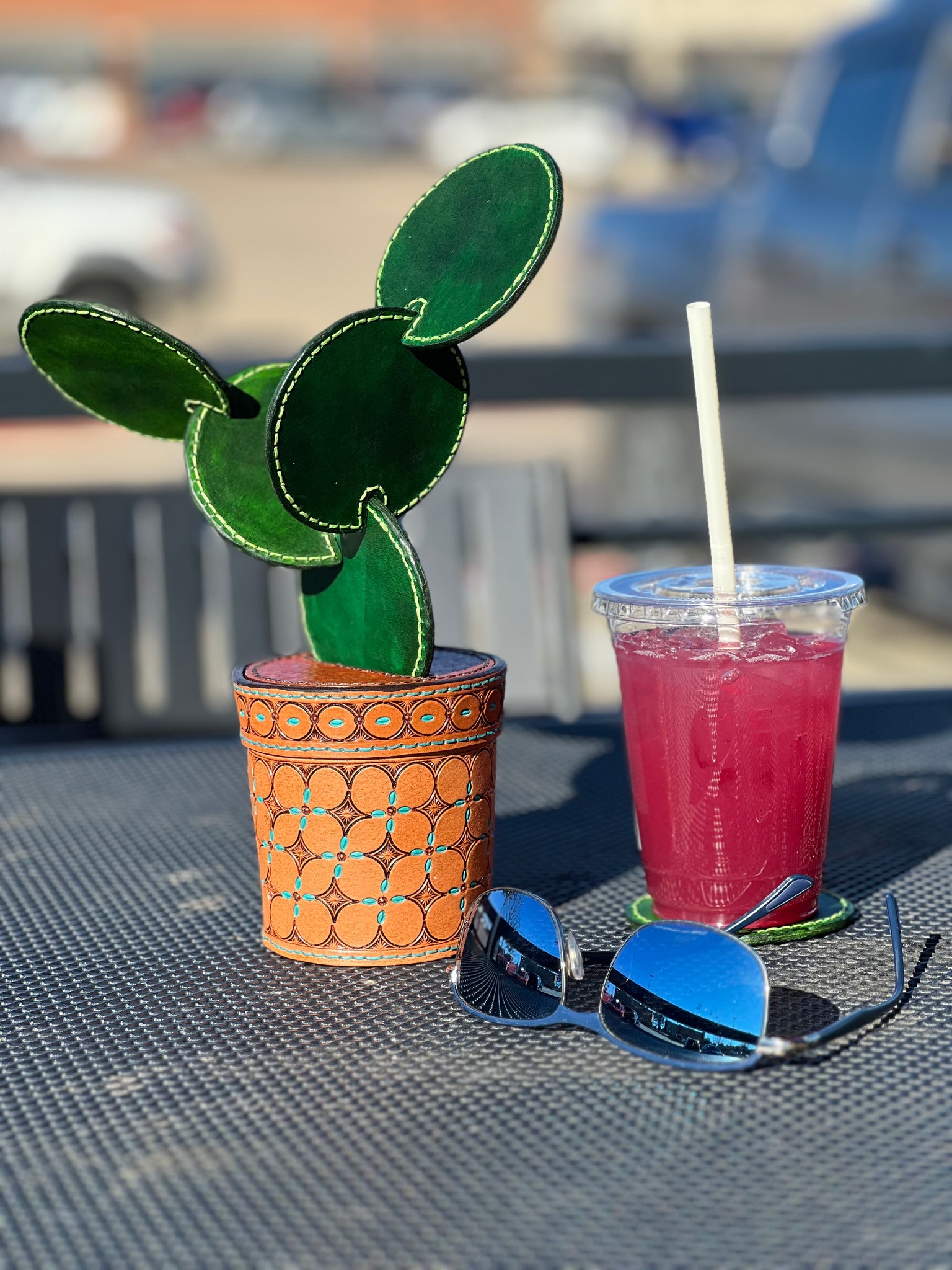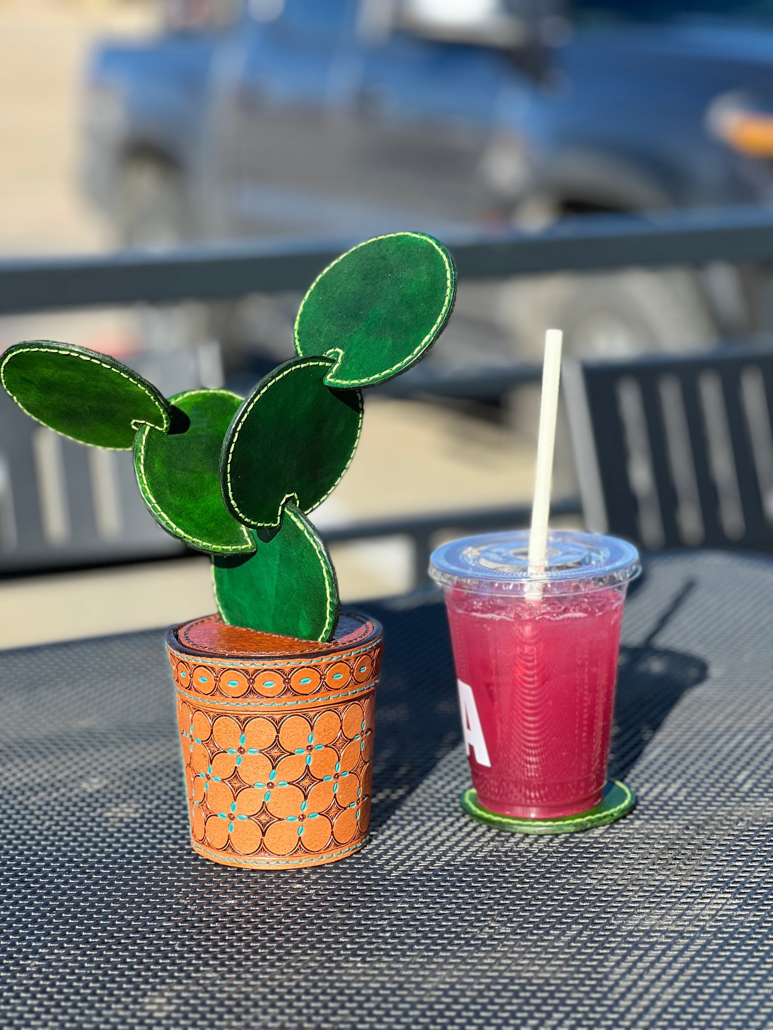 Leather Cactus Coaster Gift Set includes-
