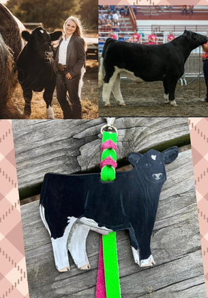 Create your very own personalized club calf key chain! These make the perfect gift for kids in FFA and 4-H. They can be clipped to keys, on rear view mirrors, show banners and more! If you'd like the shorter lace, these make perfect Christmas ornaments to memorialize a past show animal.