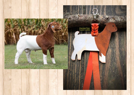 Create your very own personalized FFA show goat key chain! These make the perfect gift for kids in FFA and 4-H. They can be clipped to keys, on rear view mirrors, show banners and more! If you'd like the shorter lace, these make perfect Christmas ornaments to memorialize a past show animal.