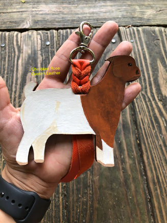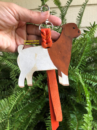 This beautiful Hand Painted Boer Show Goat Key Chain is crafted from real leather and hand painted with a show goat design. Perfect for FFA and 4-H members, this adorable keychain is a must-have item for goat lovers.