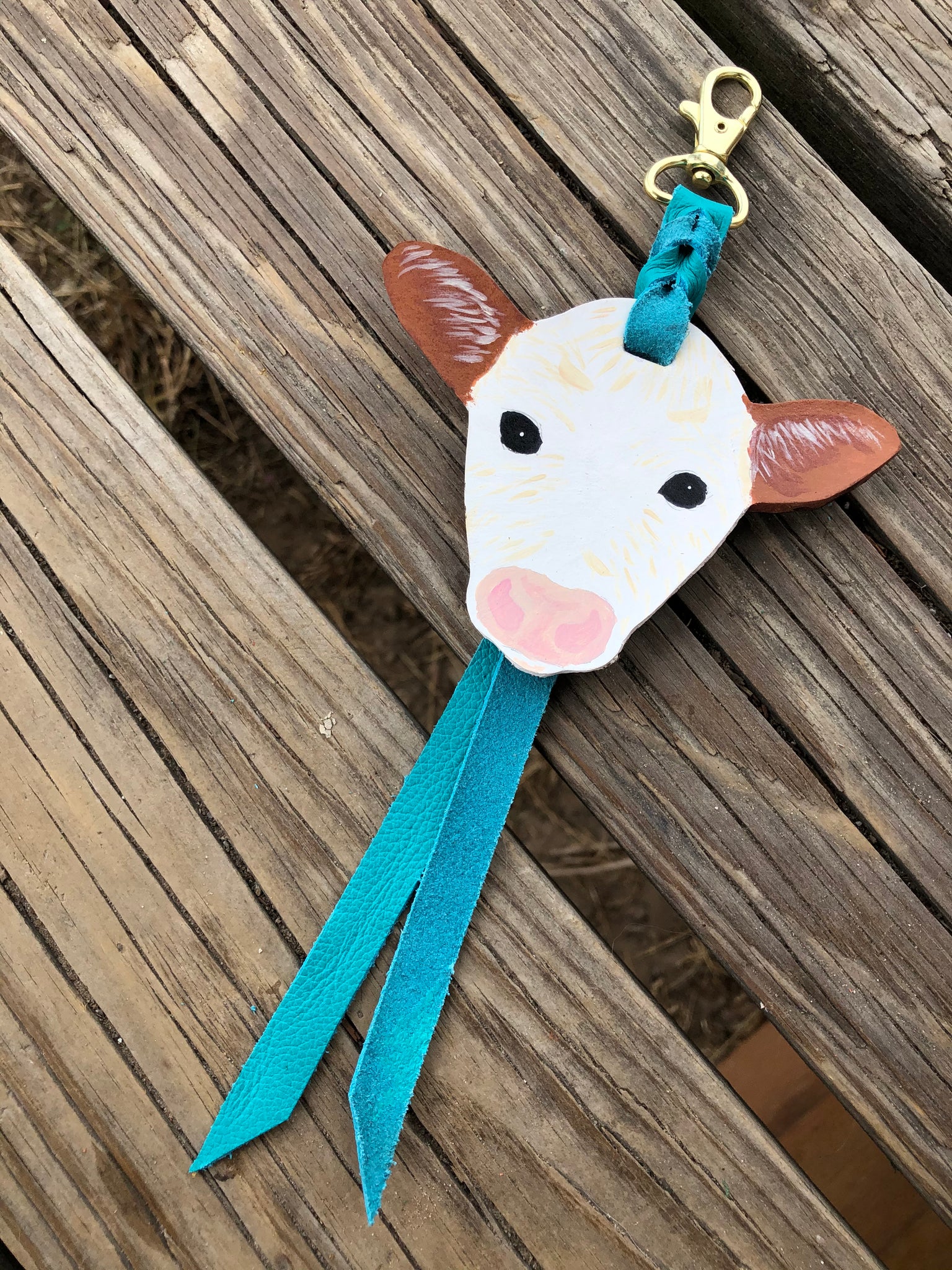 Hand Painted Hereford Calf Head Key Chain