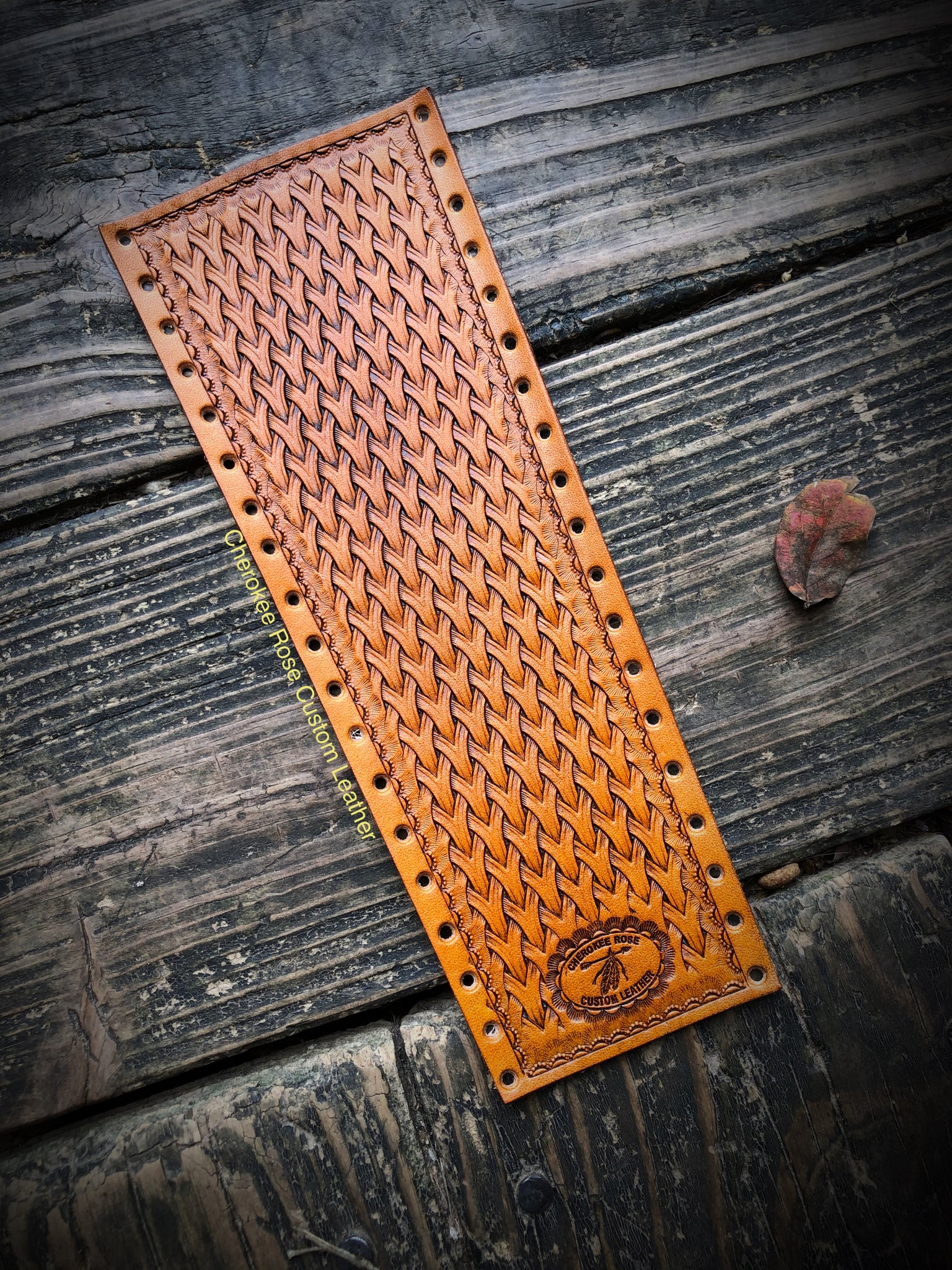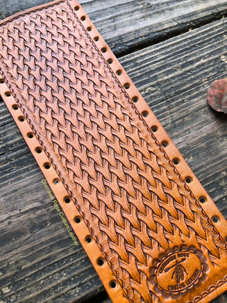 This handmade show stick wrap from Woven Basketweave Leather features a hand stamped design and a sophisticated woven basket weave pattern. I use only the highest quality real leather that ensures the look that will last for years. The perfect accessory for the show ring.