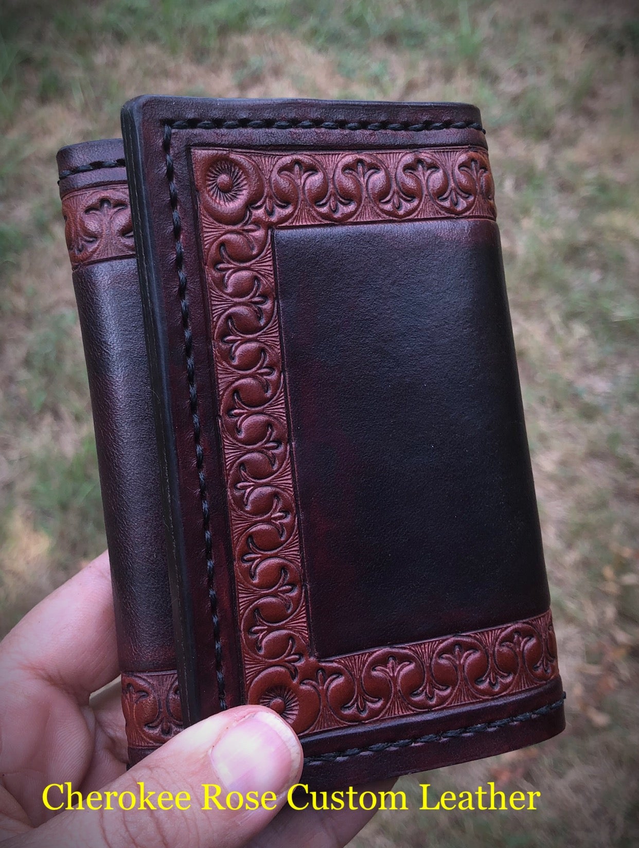 Enjoy browsing a few of our past leather trifold wallets that I've created with minimal stamped designs or initials on my FB page, Minimal Stamped Leather Trifold Wallets.