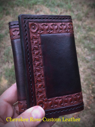 Our vegetable tanned leather trifold wallets can be hand dyed many different colors, and after you place your order, we will discuss your color options to make sure you receive the perfect wallet.