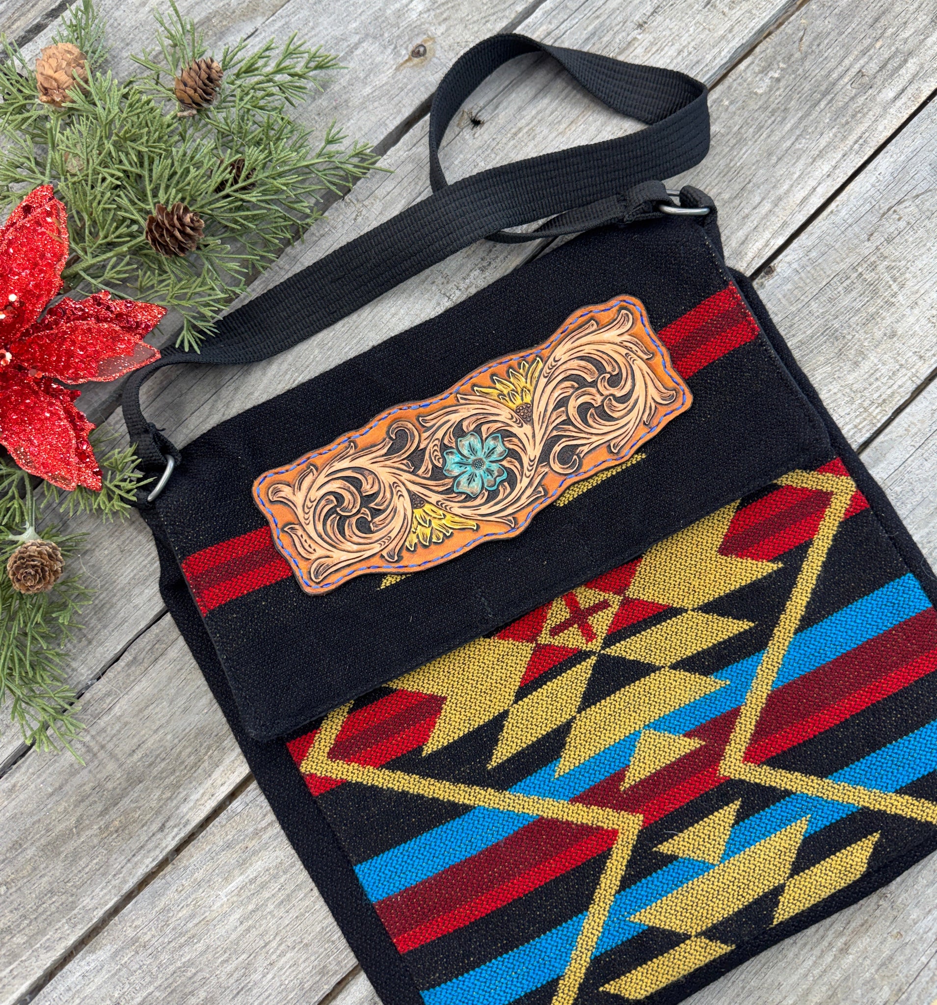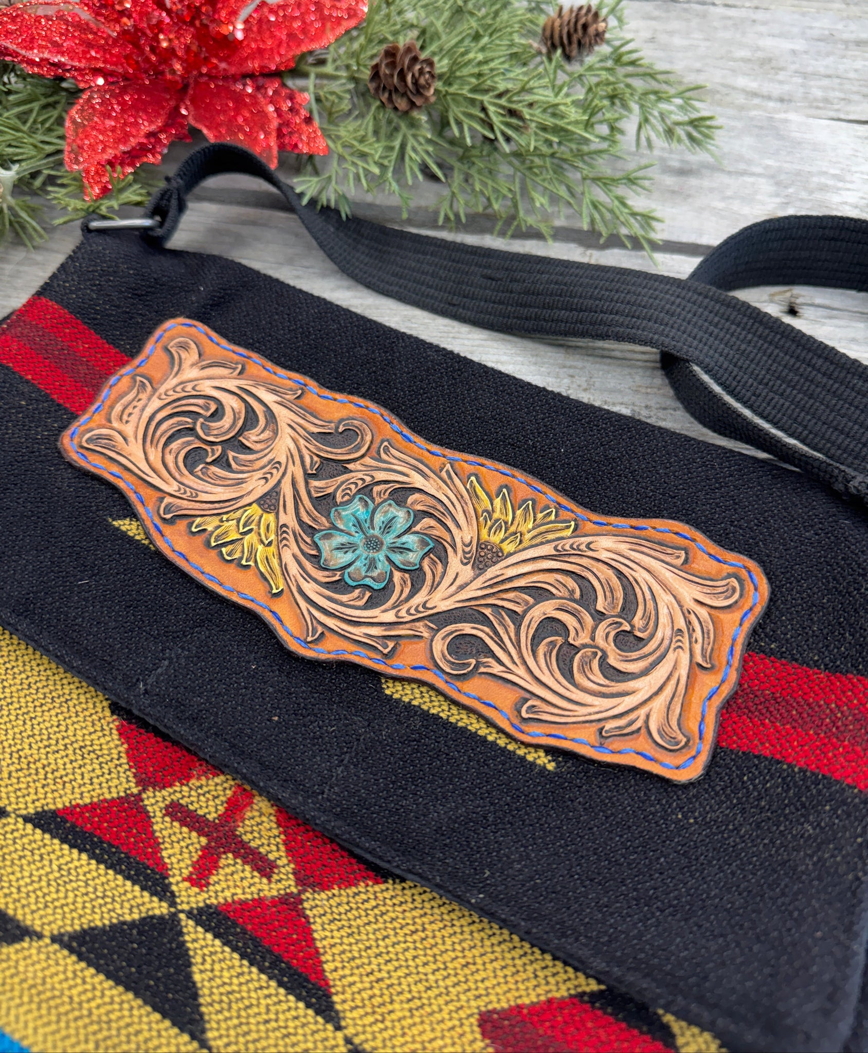 Boho Western Messenger Bag with Tooled Leather Sunflower Patch