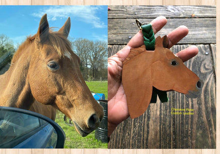 Create your very own personalized horse head key chain! Each piece is custom hand painted from a picture you provide. They can be clipped to keys, on rear view mirrors, purse rings and more! If you'd like the shorter lace, these make perfect Christmas ornaments to memorialize a past equine family member.