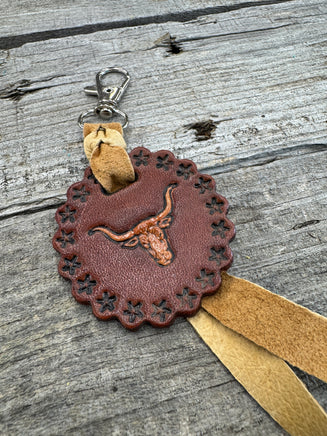 These versatile accessories double as keychains, purse accents, or bag charms — the perfect gift for livestock show kids, Western women, or anyone who loves authentic handmade leatherwork. Each charm is finished with silver nickel hardware and hand-burnished edges for a durable, polished look.