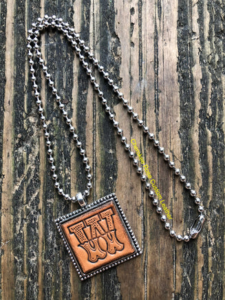Western Block Letter 'W' Initial Leather Pendant Necklace