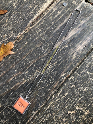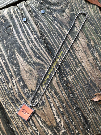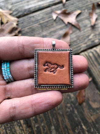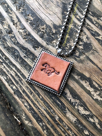 This sophisticated running horse stamped leather pendant necklace is the perfect way to express your love for animals and your style. With its high-quality leather and minimalistic design, this necklace speaks volumes with a subtle statement. The leather pendant, featuring a running horse stamped into the leather, is connected to a ball chain that perfectly complements the look. Perfect for animal lovers, this necklace will give you timeless style.