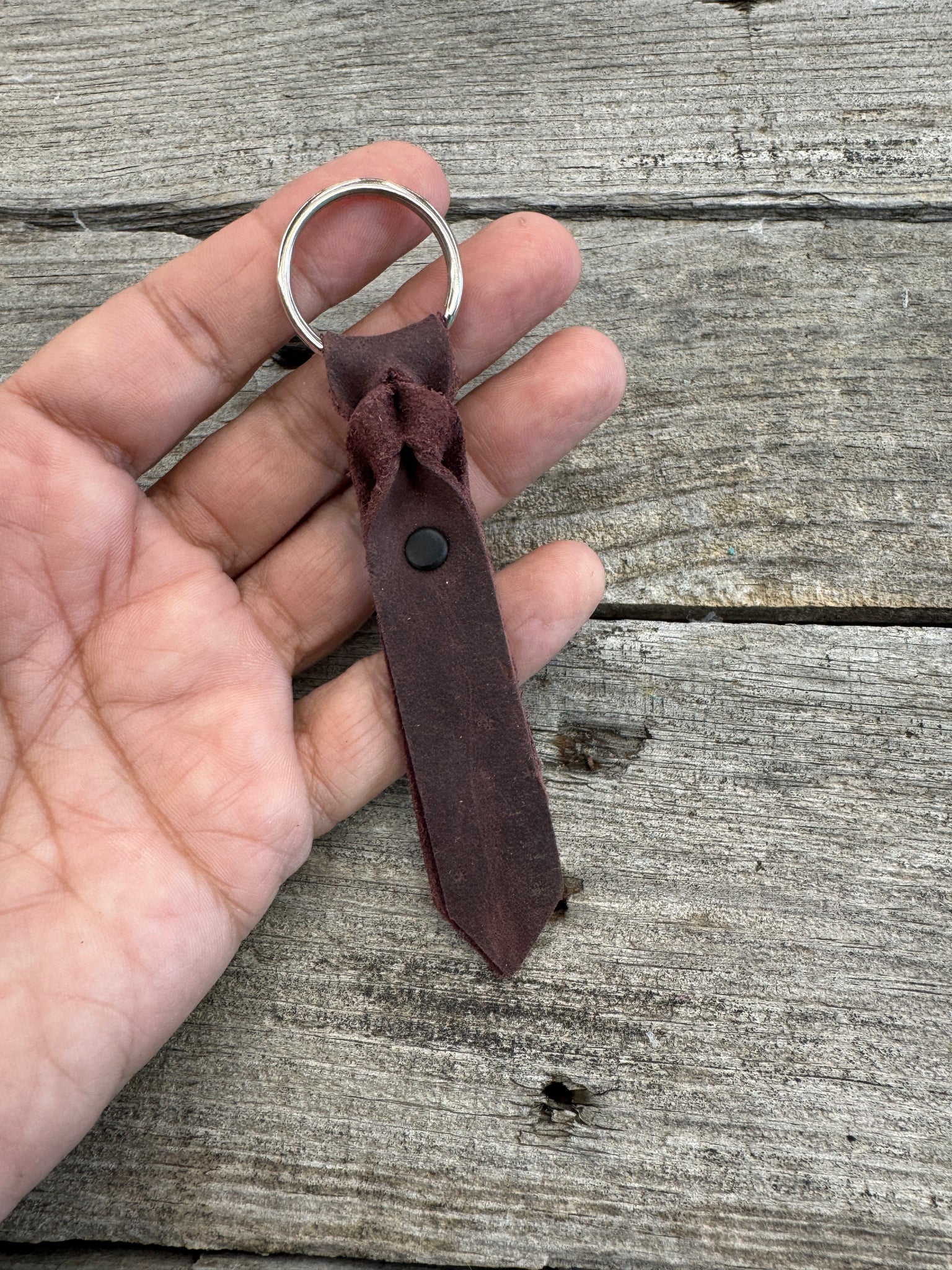 Every keychain is secured with a solid metal rivet and finished with a split key ring so it’s ready for everyday use. The natural variation in each hide gives every piece its own rich character, making no two exactly alike.