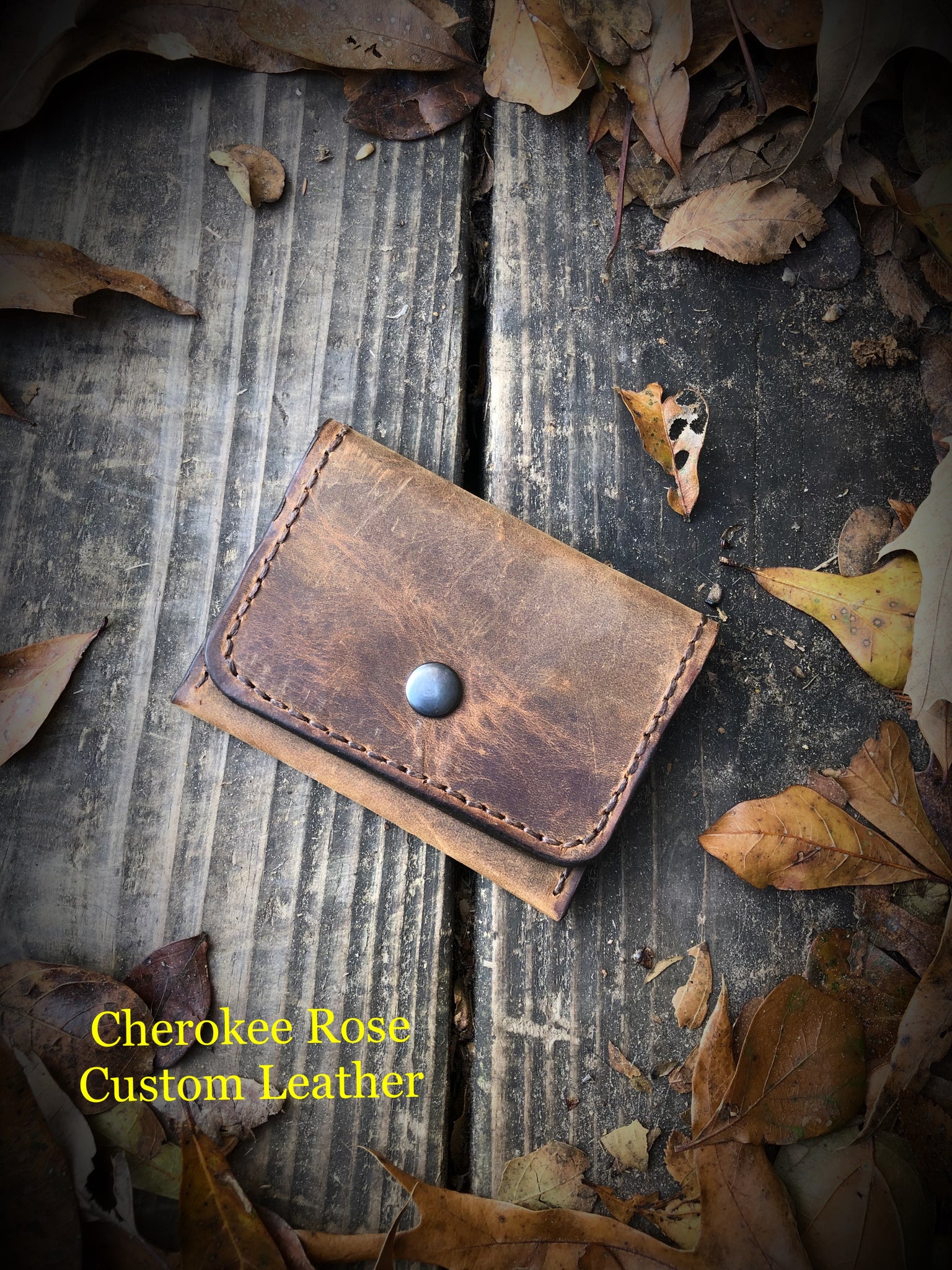 This little wallet is made from Crazy Horse Oil Tanned leather and hand stitched to perfection using only the highest quality of waxed hand sewing thread in a neutral brown tone.