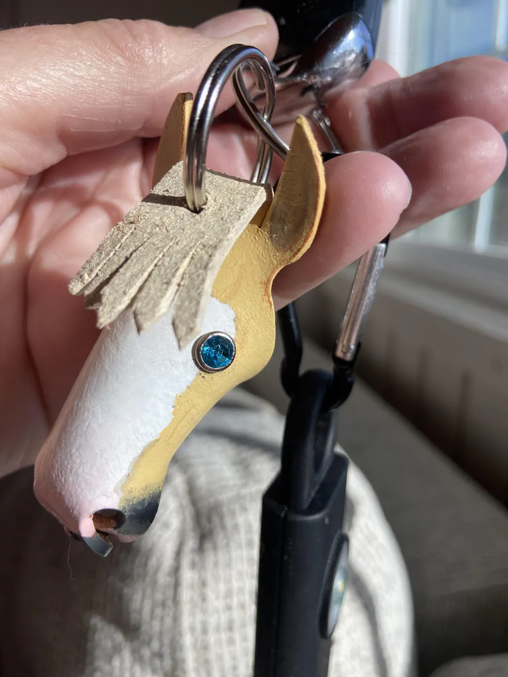 Being a horse person myself, I love items that I can order that look like my horse, so I thought I'd offer these customized leather keychains painted as a portrait of your horse!