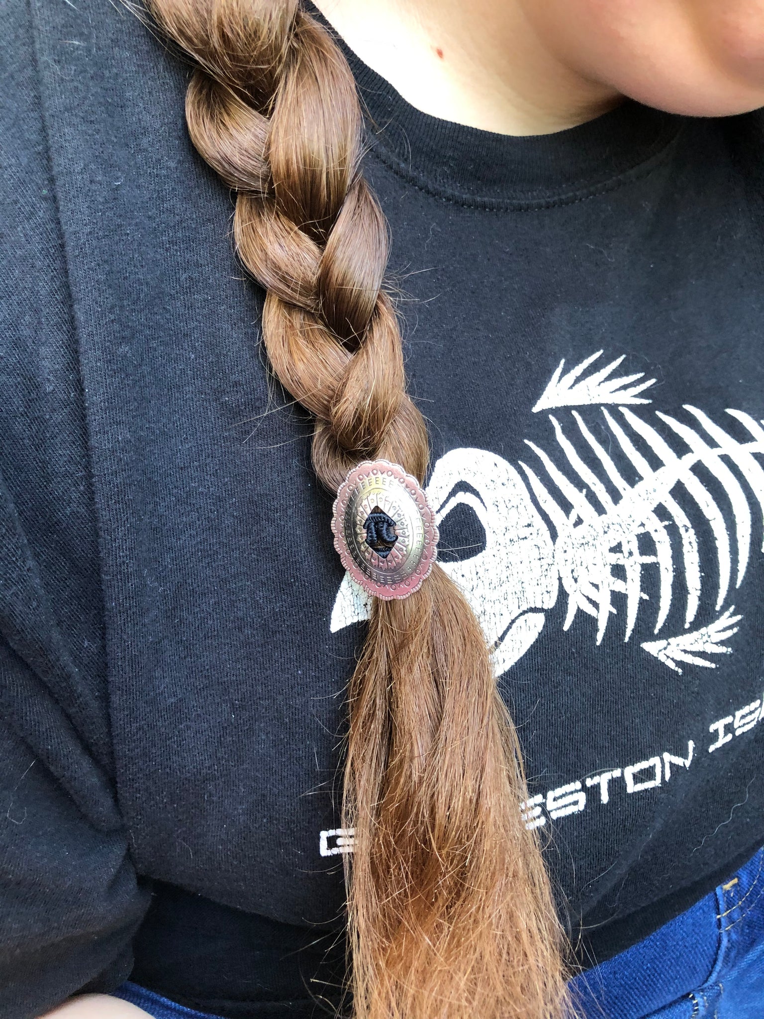 This one is a bit more dainty than the others I have made. It's smaller size and narrow band make it perfect for the end of your braid or for thinner hair.
