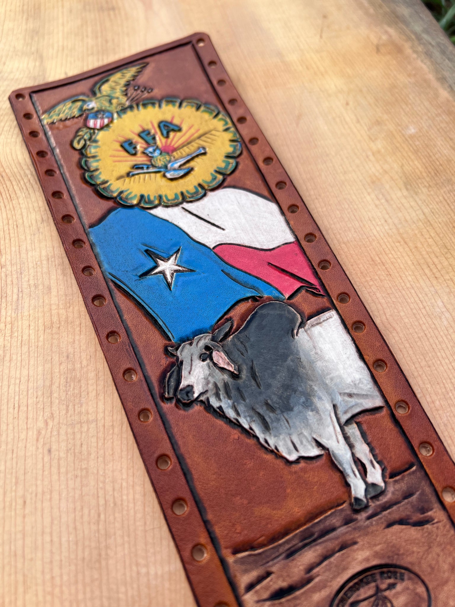 Brahma Bull and Texas Flag Painted Leather Show Stick Wrap