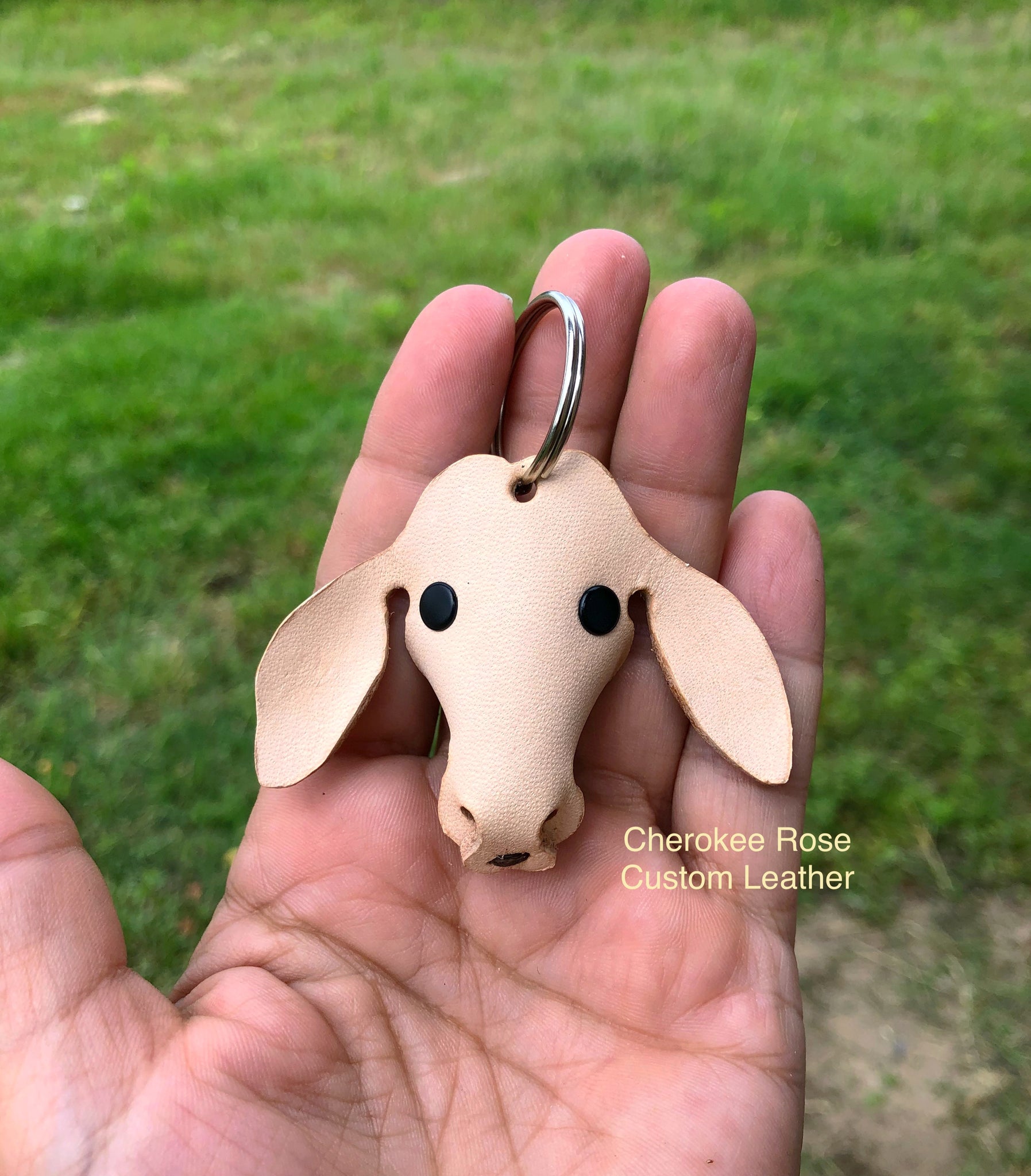 Such the sweetest little face and big floppy ears! Hand cut from the finest vegetable tanned leather, these adorable key chains are sure to make you smile every time you see them!