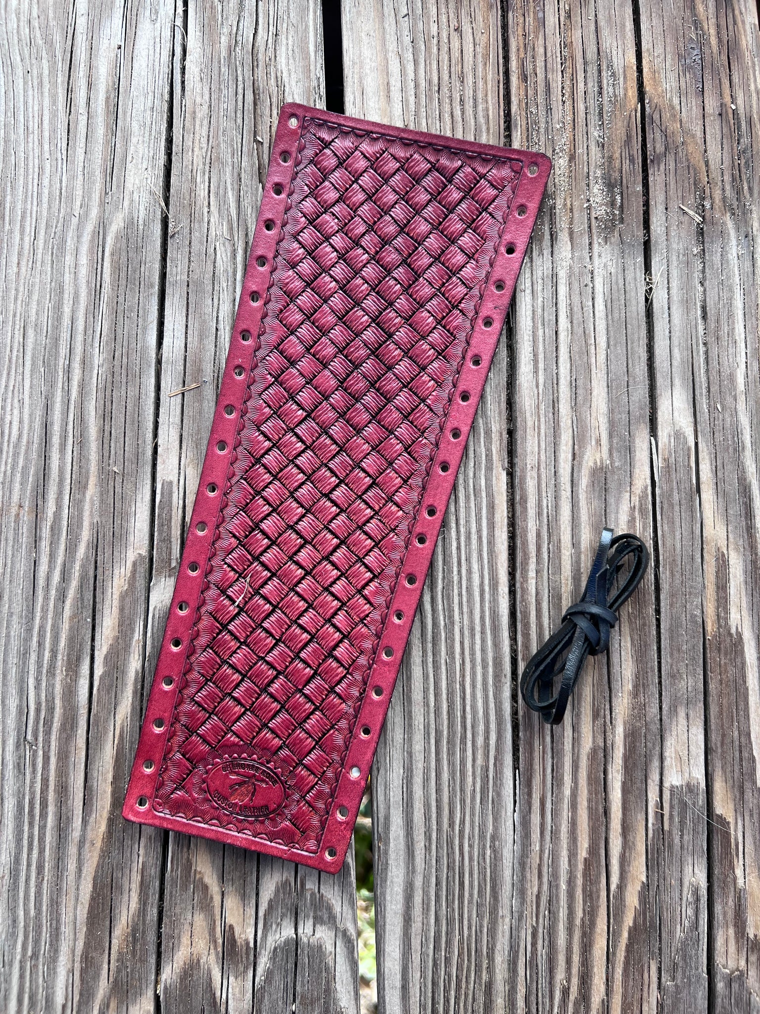 Crosshatched Stamped Design Leather Show Stick Wrap