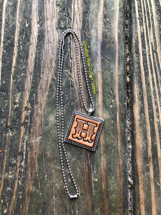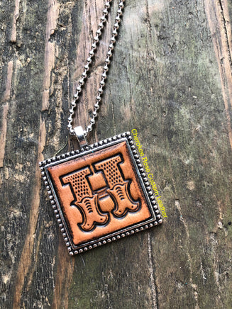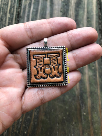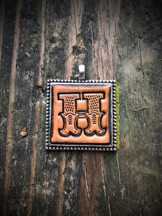 Created from hand stamped leather with the initial 'H' and then antiqued for a rustic, western look.