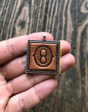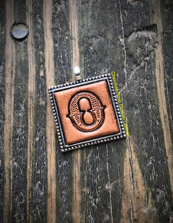 Created from hand stamped leather with the initial 'O' and then antiqued for a rustic, western look.