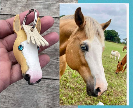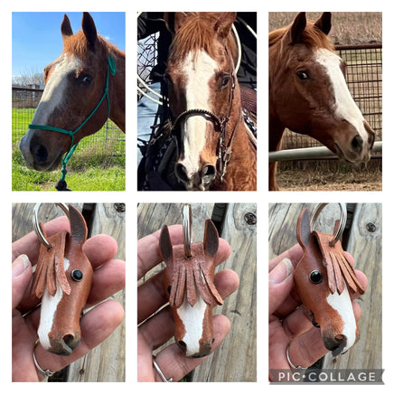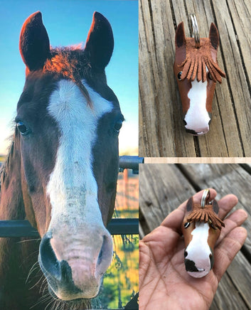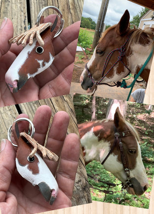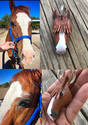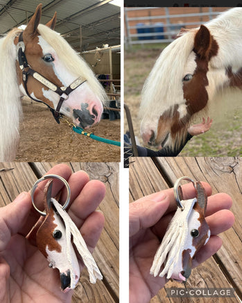 Being a horse person myself, I love items that I can order that look like my horse, so I thought I'd offer these customized leather keychains painted as a portrait of your horse!