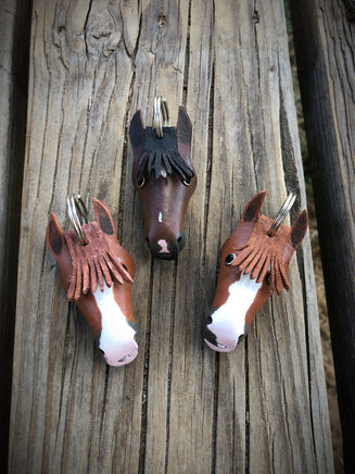 Our horse head leather key chain measures approx. 1 1/2 inches across and is about 3 inches tall without the key ring.