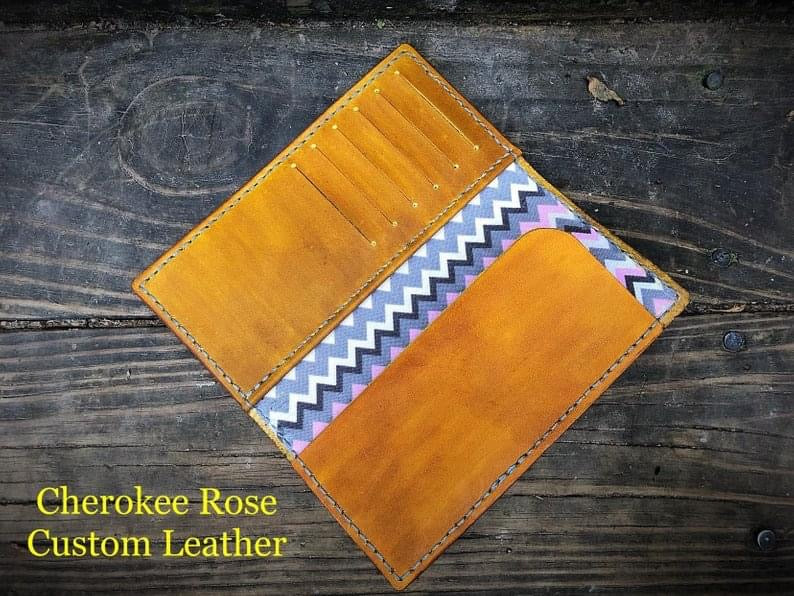 This custom ordered leather check book cover is hand stitched and made from real leather. It is designed to be as unique as you are! It is perfect for giving your checkbook stylish and sophisticated protection, with a splash of your one of a kind personality.