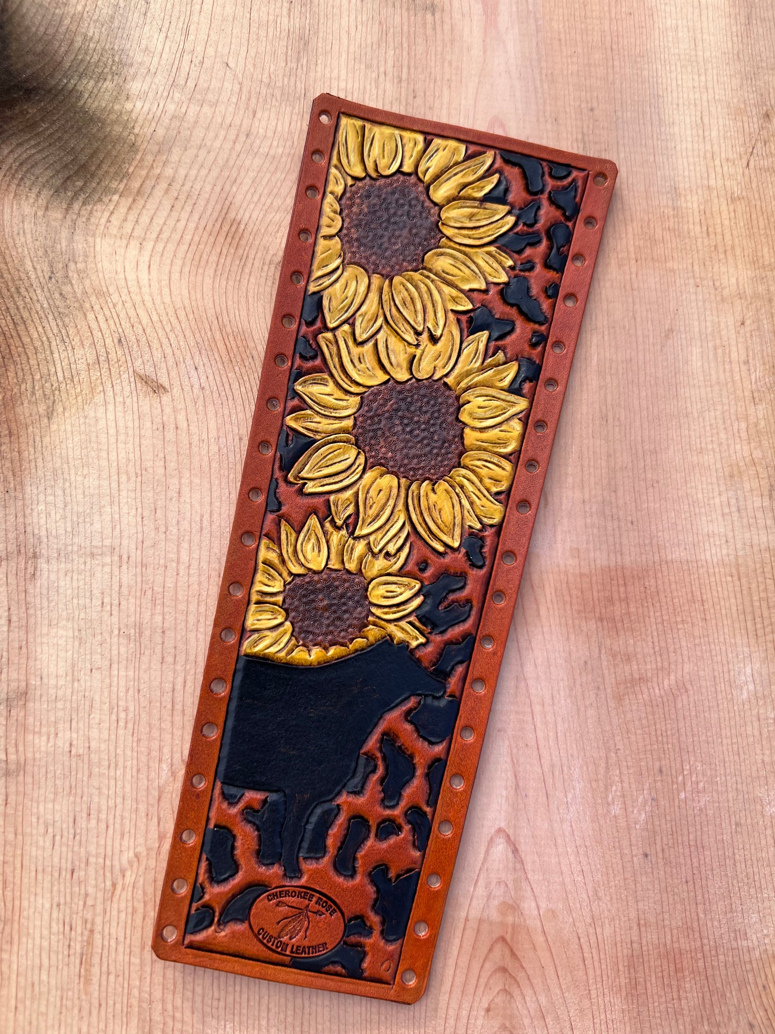 Hand Painted Sunflowers and Cow Silhouette Leather Show Stick Wrap